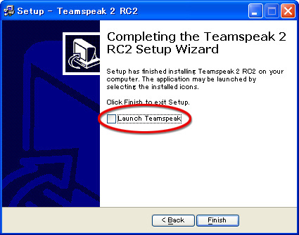 ただ,これから日本語パッチを導入するから,最後の最後に出てくる「Launch Teamspeak」のチェックボックスは外しておこう。