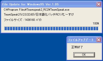 フォルダにコピーしたら,日本語パッチファイルをダブルクリック。これでTeamSpeak 2クライアントソフトの日本語化は完了である。