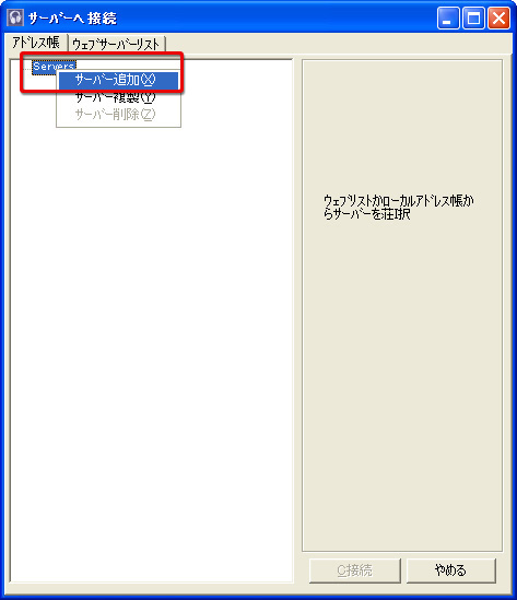 さて,いずれの場合でもユーザー側(=クライアント側)で行う必要のある,サーバー接続設定についてまずは述べておきたい。
