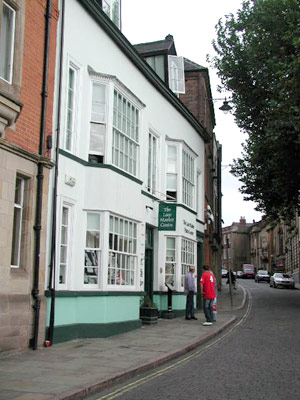 | この白い建物の裏側にある3階建ての建物に,Warhammer Online社とClimax Nottigham社の共同オフィスがある。この向かいには古い教会があって,観光客で賑わっていた |