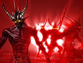 | 「ブラッドレター」と呼ばれるモンスターで,何世代にも渡る戦闘で体中に血の色が染みつき,アーマーさえも体の1部に同化してしまっている。これでもデーモンの低級戦士だ |