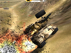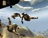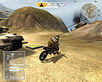 バイクの高速性を生かした拠点の奪取。8人乗りトラックを使った兵士の素速い展開。そしてスプラッシュ効果が非常に大きい戦車など,こうした大型搭乗兵器は戦局を左右する重要なファクターになる。その運用には戦略眼や慣れが必要になるが,ただ動かすだけなら誰でも簡単で,使用するキーはごくわずかだ。とくにヘリコプター類はSpaceバーを押すだけでどんな状態からでもホバリングできるので,例えば敵の放ったスティンガー対空ミサイルに対して回避行動を取っているうちに体勢を大きく崩したとしても,すぐに立ち直れるという手軽さ。初心者でも少し練習すれば,これもまたすぐに慣れるはずだ。