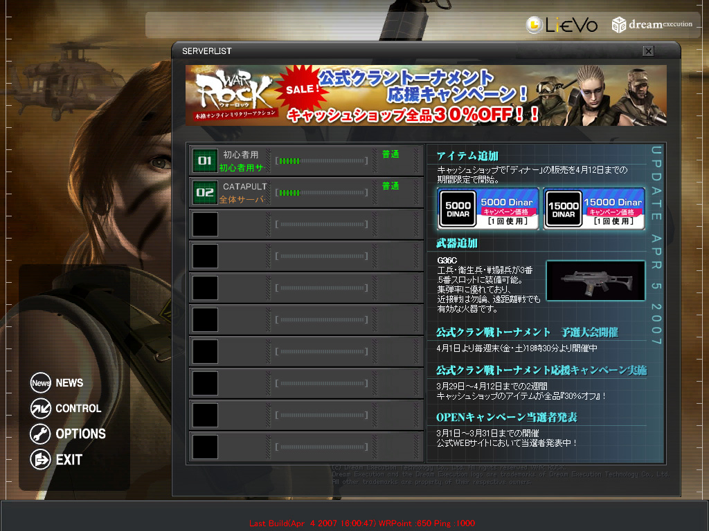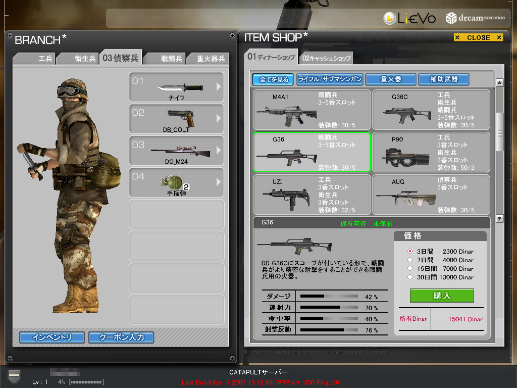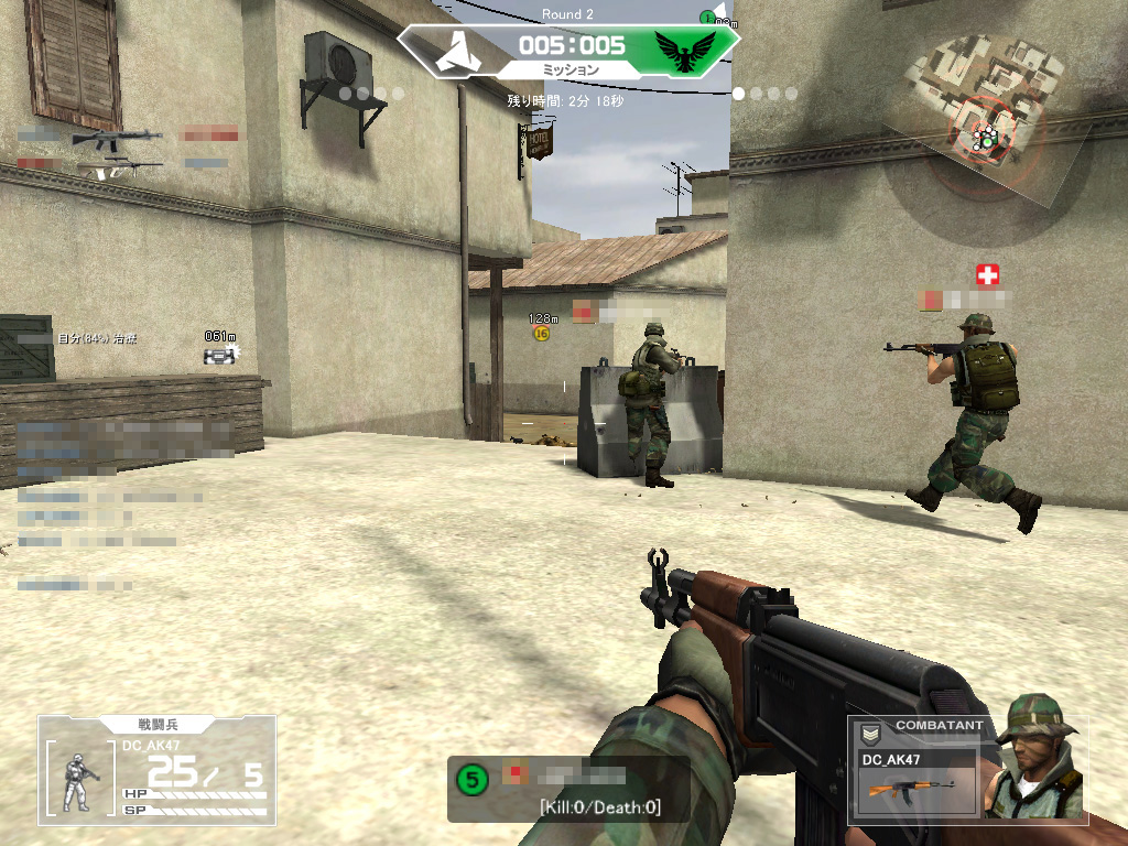 時は1990年代。世界最大の石油埋蔵量を誇るDERBARAN軍と,それを狙うN.I.U軍が戦うという設定だ。時代背景から分かるように,登場する武器や兵器はほとんど実在するものをモデルにしており,まったく架空の兵器類は出てこない。むろん,その性能に関しても実物にほぼ準じており,同じピストルでも,Glockよりデザートイーグルのほうが威力が大きい,あるいはアサルトライフルのAK47は同じM4A1より集弾率が低い(いずれの銃もショップアイテム)といったリアルな設定がなされている。そのため,FPSに慣れたプレイヤーならほとんど常識の範囲内で使い分けられるはずだが,ビギナーでも心配することはない。リアリティとゲーム性のバランスがよく考えられているため,しばらく使っていればすぐにその武器の特性に慣れるはずだ。調べようと思えば調べられるが,ここは「習うより慣れろ」だろう。