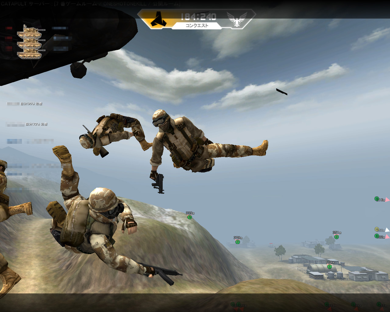 プレイヤーは一人の兵士となって,オンラインでつながった戦場を駆けめぐる。画面はこのような感じで,自分自身の姿は見えない