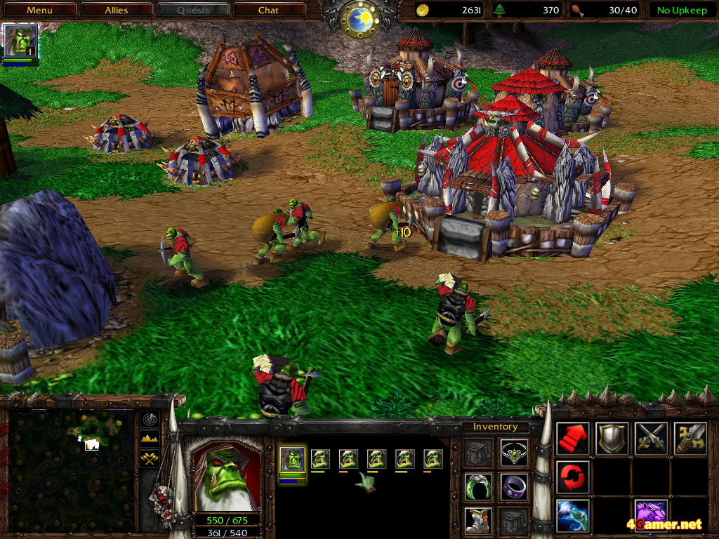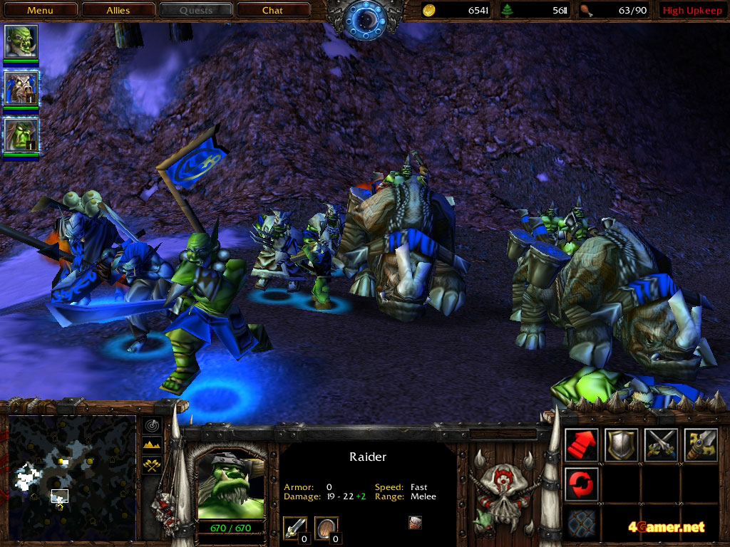 Orcは肉弾戦……つまりは近接戦闘系のユニットが非常に優秀だ。一番最初に「Barrack」から生産できる兵士「Grunt」にしても,他の種族の初期ユニットに比べて倍近いHPを誇り,そのパワー感たるや他の種族を圧倒している。生半可な軍隊などは,このGruntを生産するだけで粉砕できてしまうコトすらあるのだ。アップグレードによる能力値上昇の幅も大きく,中盤以降も主力として使える頼もしいユニットといえるだろう。しかし,肉弾戦ユニットの宿命として対空能力は持ち合せておらず,もし敵が飛行ユニットを使用している場合には,同じくBarrackで生産可能な「Troll