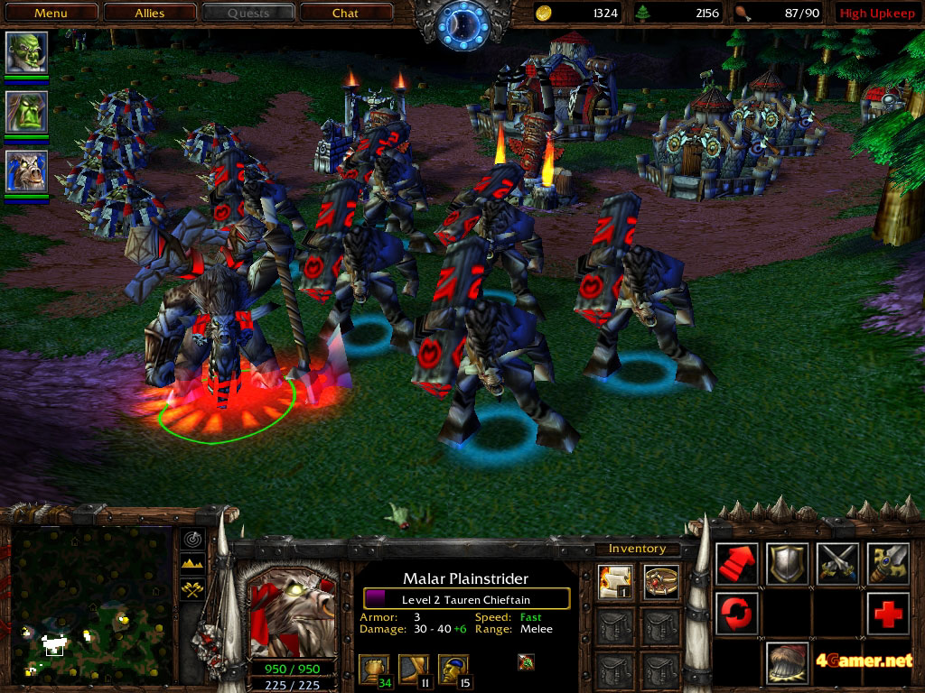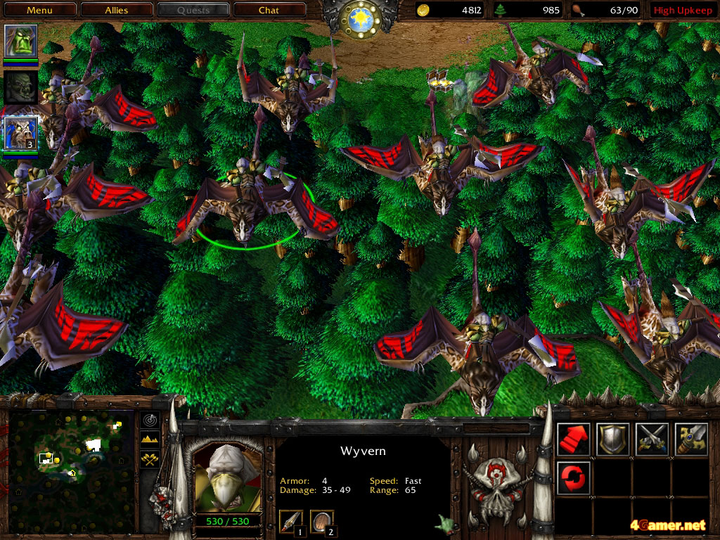 Orcに用意されている上級ユニットは,対地/対空とも万能に戦える飛行ユニット「Wyvern」と,近接攻撃のエキスパート「Tauren」の2つ。Wyvernはその機動力と長い射程攻撃により,非常に汎用性に長けた戦いができる点が最大の特徴。どんな状況でも無難に能力を発揮するユニットだ。しかし,耐久力の面では今一つで,敵が対空攻撃できる射手系のユニットを主体としている場合には,思ったような戦果を残せない場合が多いようだ。肉体派ユニットのTaurenは,圧倒的なHPと攻撃力を備えるユニットだ。加えて,「Pulverize」というテクノロジーを開発することによって,攻撃が一定の確率で範囲攻撃になるなど,乱戦ではかなりの戦闘力を発揮してくれる。ただ近接攻撃ということで,やはり空からの攻撃には弱く,終盤における単独使用はリスクを伴ってしまうことだろう。