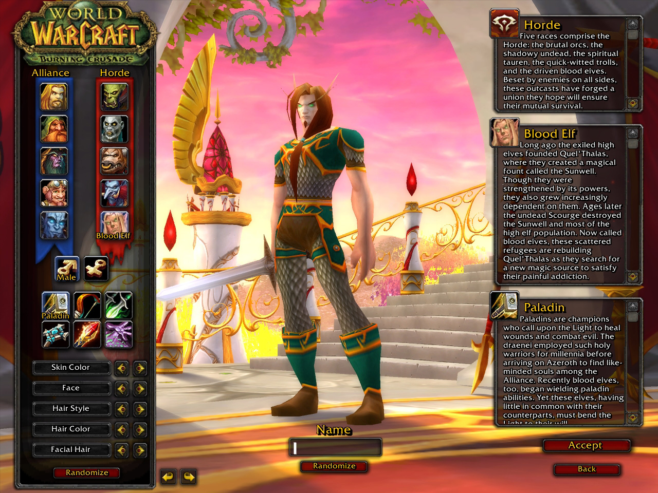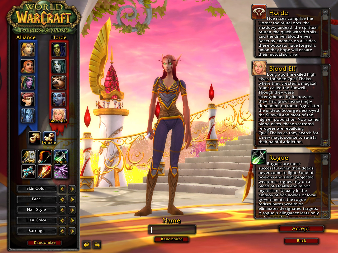 TBCでは,プレイヤーキャラクターとして選択可能な種族が新たに2種族追加され(DraeneiとBlood Elf),それに合わせて低レベルキャラクター向けの新たな冒険エリアも追加された。プレイを始めたばかりのキャラクターを育てるエリアの選択肢が増えたので,新キャラクターを育成する楽しみは以前よりも増したといえる。