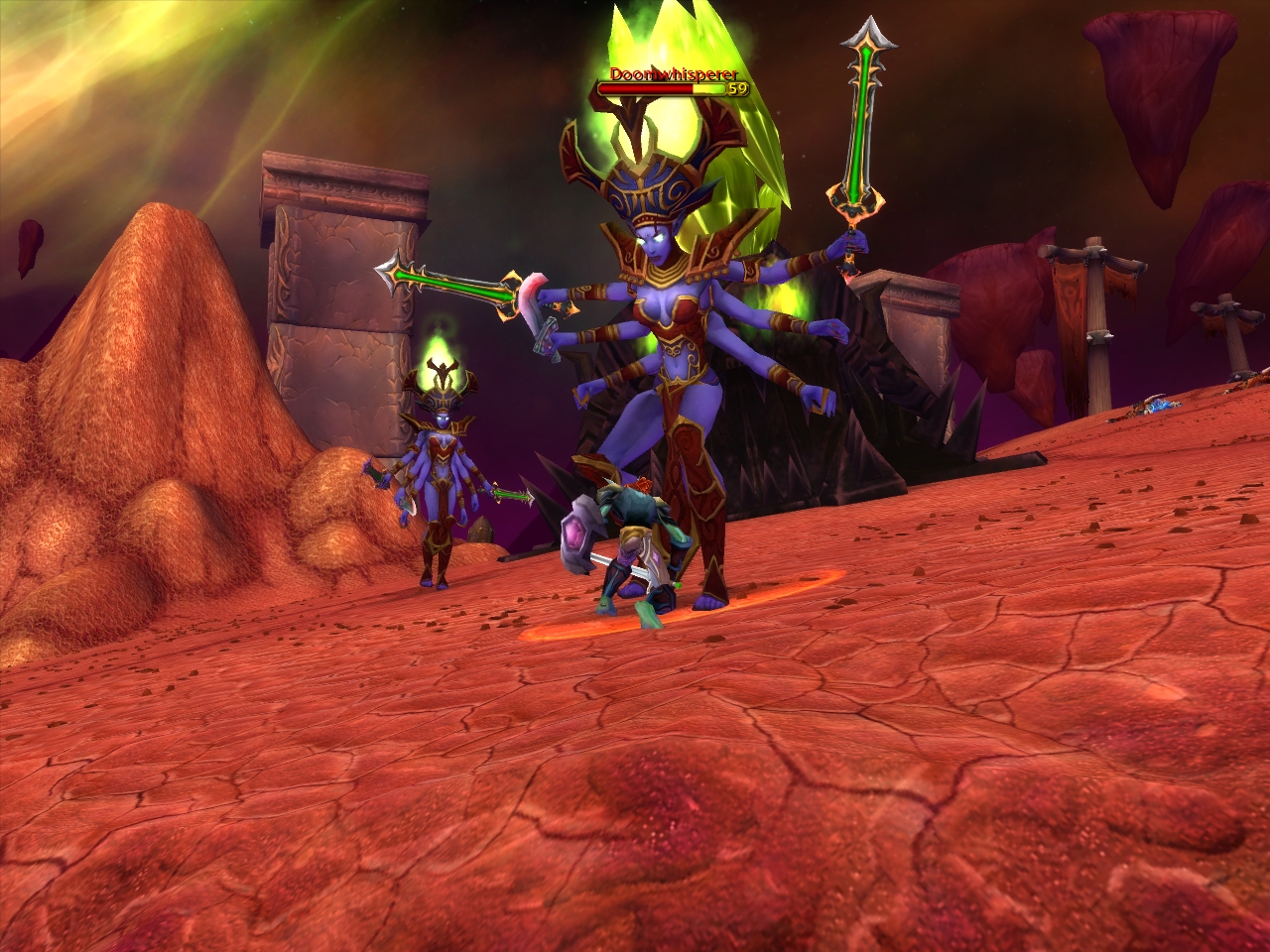 Paladinの「Divine Intervention」は,自分の命を犠牲にすることで,味方一人を戦闘から完全に離脱させる魔法だ。戦闘中に全滅が近いと判断したとき,PaladinはこれをPriestやShamanにかける。すると自身は死亡して,対象となったメンバーは聖なるエネルギーに包まれて戦闘から離脱し,敵からは見えない状態となり,その場からは動けなくなる。