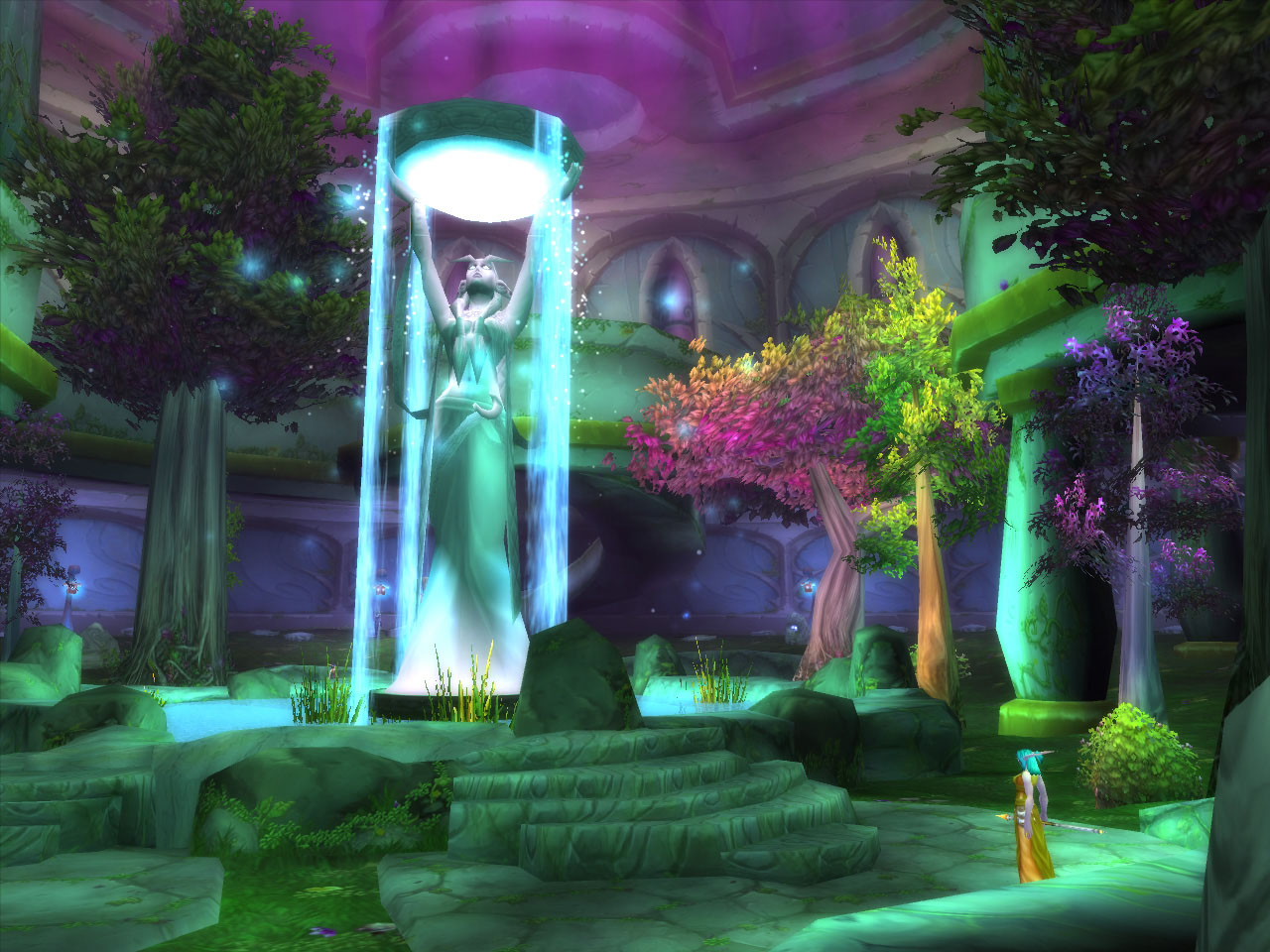 1万年前,ナイトエルフ達は巨大な帝国を築いていた。しかし原初の魔法エネルギーを,まるでおもちゃのように気安く扱ったことが原因となって,この世界にデーモンの勢力 the Burning Legionを呼び込んでしまう。これをなんとか撃退したナイトエルフだったが,自分達の帝国は崩壊してしまった。そして以降,彼らは森の中へと引き込み,そこでひっそりと暮らす神秘的な種族となった。
