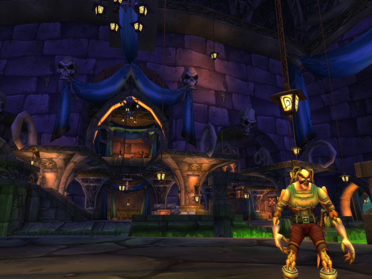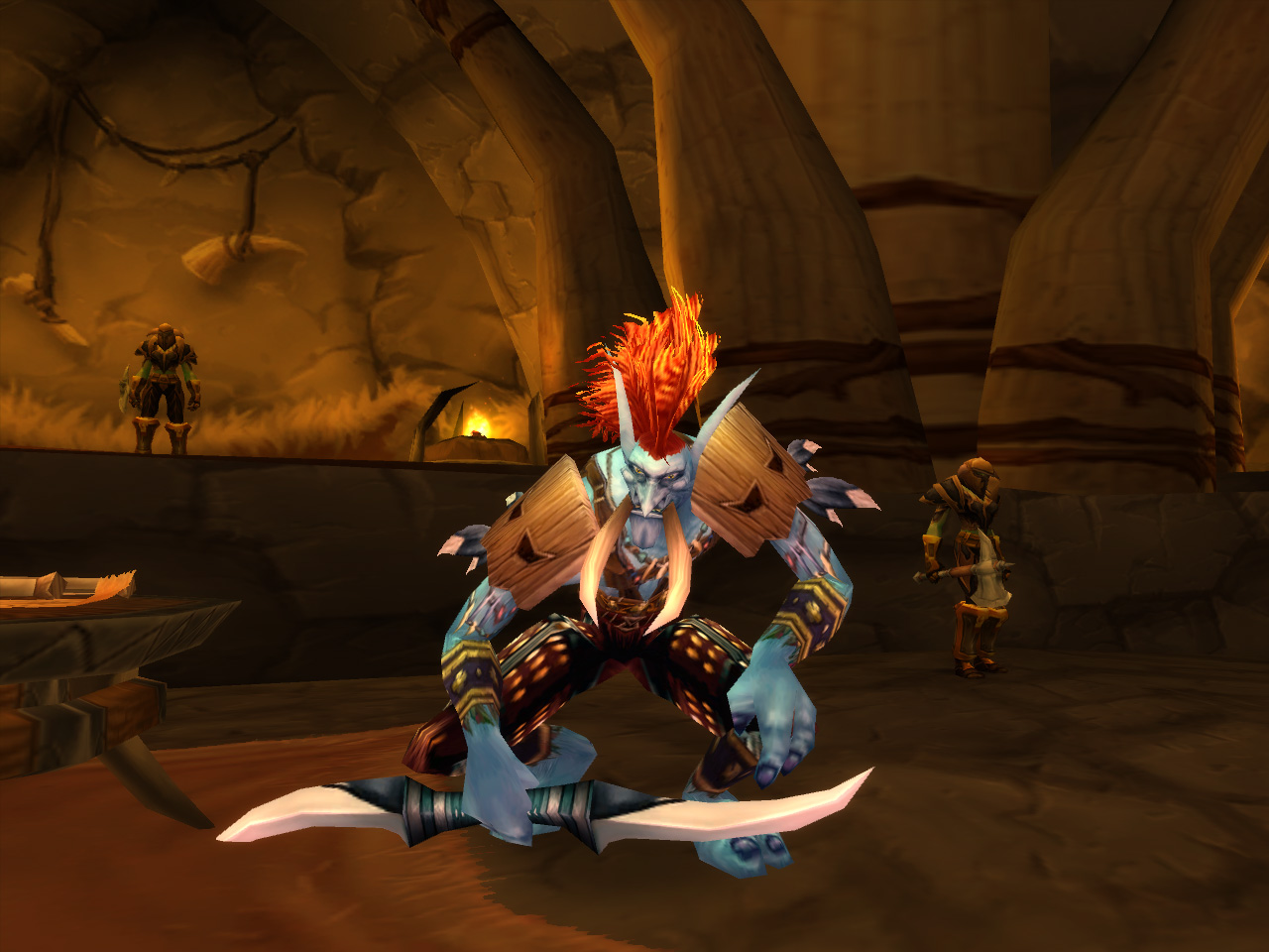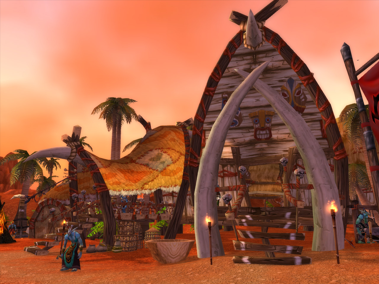 集落にある,いかにも風通しの良さそうな建物や,衣服やタトゥーの意匠,まじない師の社会的地位が高いという文化などから察するに,WoWのトロルは大昔のカリブ海周辺の文化から着想を得てデザインされているようだ。なかなかマルチな才能を持った種族であり,多くのクラスに就ける。「トロルはHealthのリジェネレーションレートが高い」という,ファンタジーゲームの伝統はきっちり反映されている。