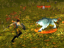 一度攻撃状態になったら,再度1キーを押して攻撃を停止するか,敵を倒し終わるまでは自動的に攻撃し続ける。また,魔法や弓,銃などで攻撃するには,対象をターゲットして該当するAction Barのボタンを押せばよい。対象がそのスキル/スペルによって攻撃可能な範囲にいるかどうかは,Action Barの数字の色で判断できる。数字が白くなっていれば攻撃可能範囲内であり,赤くなっていた場合は対象が遠すぎ,もしくは近すぎる。