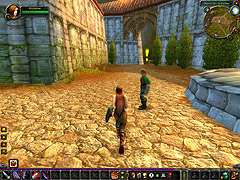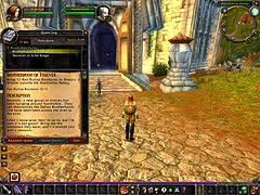 「Simple Letter」は,この修道院にいるWarriorのトレーナーに手紙を持って行けというクエスト,「Investigate Echo Ridge」は,10体のKobold Workerを倒してこいというクエストだ。Mini Mapを見てみると,すでに「Simple Letter」の目的のNPCであるWarriorトレーナーの位置に,黄色いポイントマーカー(点)が出ている。さっそくそちらに向かった。