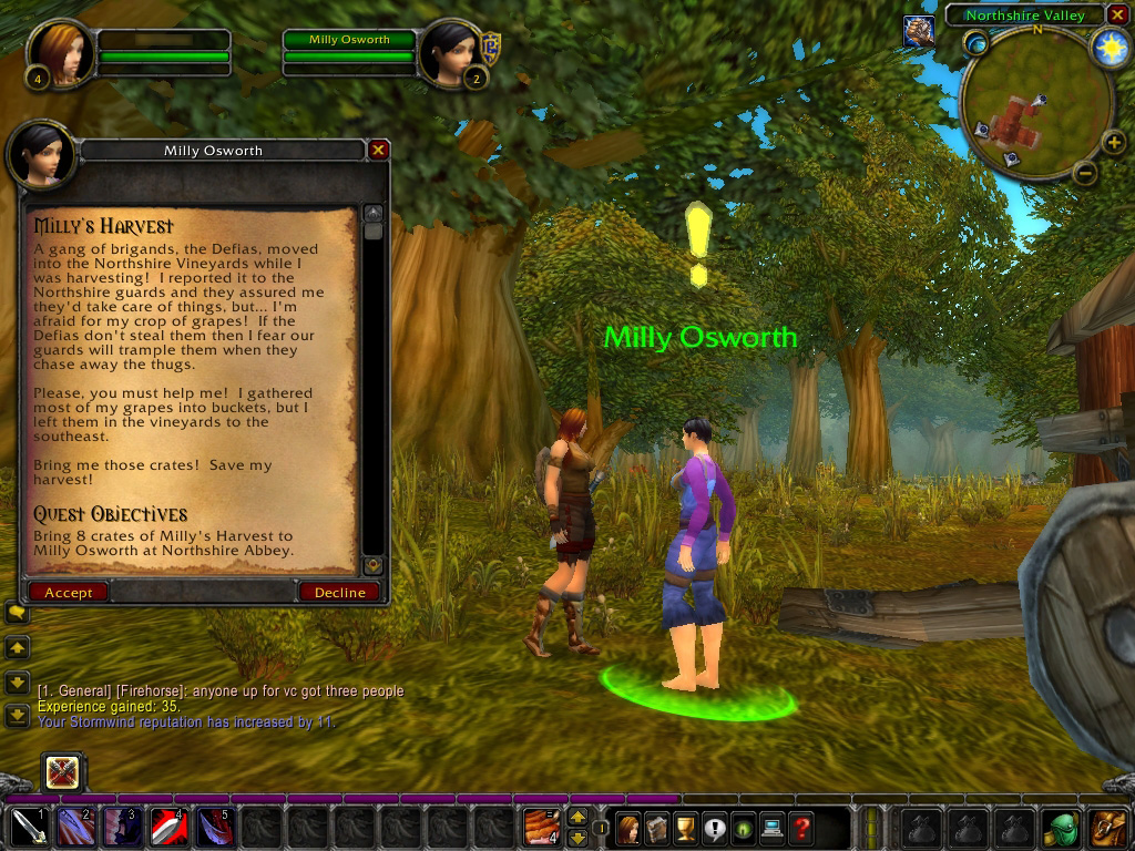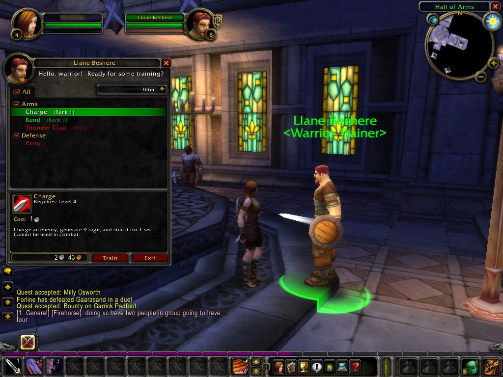 偶数レベルに達したので,トレーナーのところにトレーニングに行く。今度は新たに二つのアビリティを覚えられた。Action Barに登録してから,Millyさんのところに向かうことに。