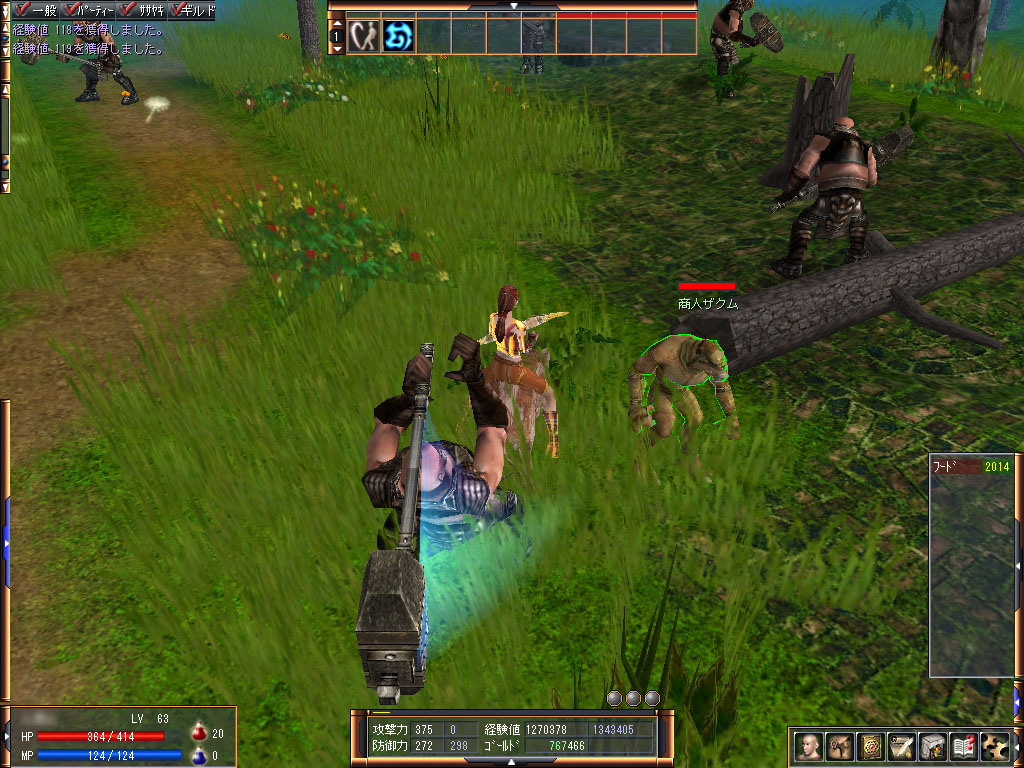 その一人が,エリオン村からアズランへ向かう途中の川周辺に出現する,「商人ザクム」だ。ほとんど止まることなくフィールドを走り回るこの商人は,普通に走っても,追いつくのは不可能。見かけたら,素早くクリックして商品ウィンドウを開こう。それでダメなら,運良く立ち止まってるところを見かけるまで我慢だ。