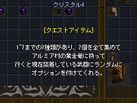 なお,このクエストに挑戦するときに,余分なクリスタルを持っていると,同時に消失してしまう。1セット分のみ持っていくようにしよう。
