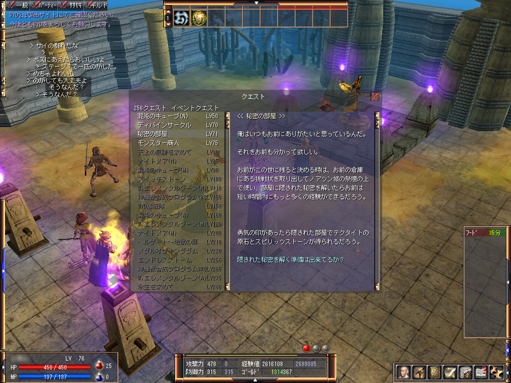 「秘密の部屋」は,レベル71のイベントクエストだ。ノアツン城のロトの祭壇で「挑戦状」というプレミアムアイテムを使用することで挑戦できる。