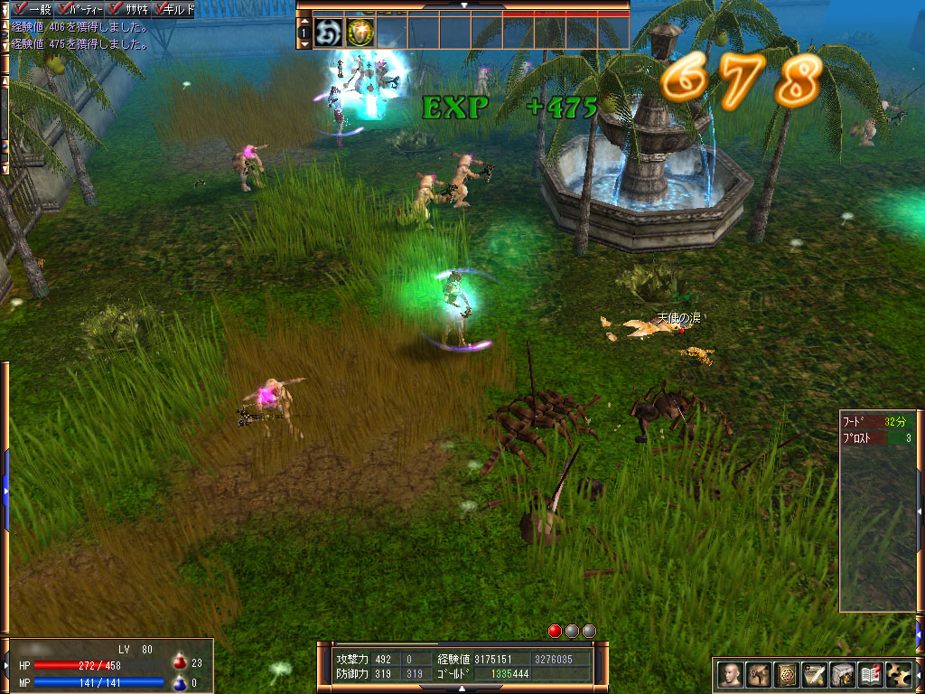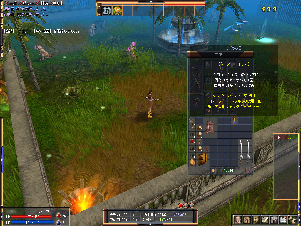 この「天使の涙」は,使用すると経験値が1万もらえるボーナスアイテムだ。この庭園の1回あたりの滞在時間は最大10分で,レベル80からレベル95までしか入れない。ここで一気にレベル95を目指すのもいいだろう。制限時間が短いので,時間いっぱいまで天使の涙を狙おう。