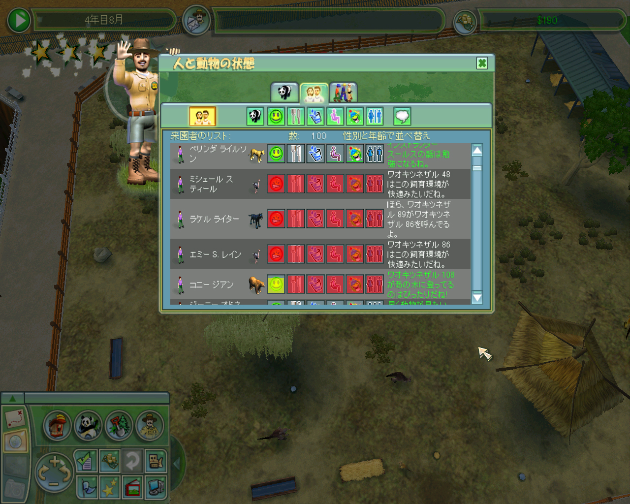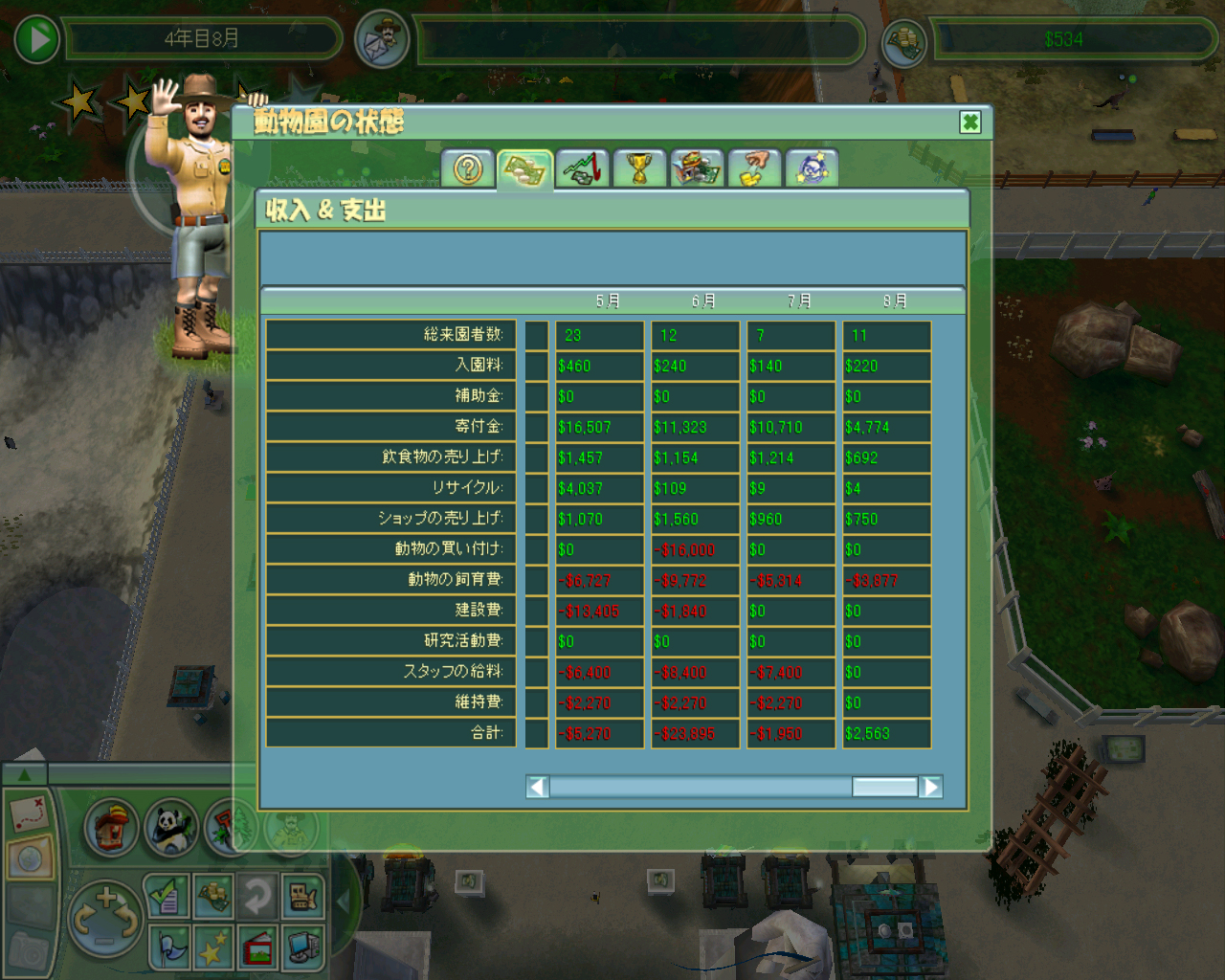 マウンテンゴリラの購入で運営資金がすってんてんに近くなった当園ですが,ここで経営を軌道に乗せられれば夢の巨大サバンナを生み出せるはず! 背水の陣を敷く当園の明日はどっちでしょう?
