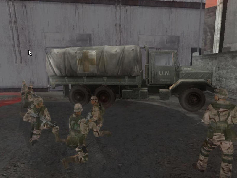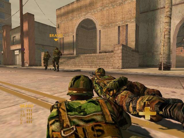 of War(戦場の霧)の状態となり,カメラの移動だけでは詳細が判別できないようにブラー効果がかけられている。 個々のキャラクターにはパーソナリティが設定され,青少年には聞かせたくないようなスラングを使うこともある。状況に合わせて3種類ずつのセリフが用意され,それぞれ平常時と戦闘中でトーンが変わる。これらの情報も意外に重要で,キャラクターが攻撃を受けている,負傷している,残弾が少なくなっているといったことは,インタフェースでなくセリフでしか分からない。この仕様は,分隊長が情況を判断しながら侵攻していくための訓練ソフトとしては理に適っているが,日本語版がリリースされないと非常にツラそうな部分でもある。