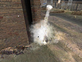 Full Spectrum Warriorの兵士達の思考ルーチンは非常に細かい部分まで設定されていて,まさにプレイヤーの手足となって活動する。4人のチームメンバーは常時周辺の状況を把握しようと努め,それぞれをカバーし合っている。隊形によって一人の兵士が担当する方向が決まり,なるべく死角ができないように心がけているようだ。死角となった部分はRTSなどでよくあるFog