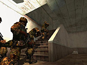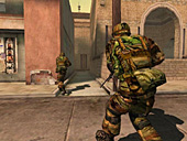 このように,味方キャラクターのAIはかなりの精度を誇り,チームが一丸となって戦っている気分にさせてくれる。ただし,敵は近辺の仲間と協同で攻撃してくるといった行動パターンを持っておらず,ときどき予期しない方角から攻めてくるといったスクリプティングに頼っているのが残念なところだ。また,インタフェースがシンプルで,アクションでなく命令で進めるぶん,プレイは繰り返し作業のように感じられるかもしれない。 Full Spectrum Warriorは,敵に向かって自分が発砲するシューティングゲームではなく,ユニットに命令するRTSのような要素で成り立っており,斬新なミリタリー系ゲームになっている。本物の兵士達によってテストプレイが重ねられているともいえ,戦場の臨場感を追体験できるのは間違いないだろう。アメリカではTHQから2004年9月末にリリースされる予定だ。
