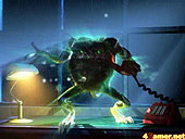 "裏の主役"となる人間たちにも触れておこう。人間には,恐怖度,狂気度,信霊度の三つのパラメータがある。恐怖度がいっぱいになれば,その人間はその場から逃げ出すし,狂気度がいっぱいになれば,発狂してしまう。 信霊度とは,つまり霊の存在を信じる度合い。これが低い人間には,ゴーストのパワーが効きにくいのだ。そのため相手によっては,何かしら不思議な現象を立て続けに起こして信霊度を上げてから,怖がらせなければならない。 また任務によっては,対象となる人間が逃げ出さないよう恐怖度に注意しつつ,信霊度だけを上げていくといったことも必要になってくる。 ゴーストの"墓碑銘"と同様に,人間も"情報"コマンドでプロフィールが見られる。その人間についてよく知ることは,効率良く怖がらせることにつながるだろう。 続いて14種類ある任務について。あらかじめお断りしておくが,人間を驚かせるのは,任務(≒目的)ではない。手段だ。任務は,実にバラエティ豊かである。 人間に,"ダークリング"と呼ばれる太古の霊魂を召喚させるのが目的の任務,「悪夢のはらわた」。同様に映画制作者に"ダークリング"を召喚する儀式を行わせる「ブレア・ウィスプ・プロジェクト」。グレイブンヴィルの悪徳総合病院を舞台にした「オペ室の怪人」。「スプーキーホロウ」,なんて任務もある。さらには,対ゴースト組織に逮捕(?)されたゴーストを助け出す「ゴーストブレイカーズ」などなど……。 任務の名前に見覚えがある? だったら,その任務の内容でも笑えるかもしれない。こういったパロディのセンスは,(昔こそよく感じられたが)最近のゲームでは非常に珍しく,実に新鮮である。