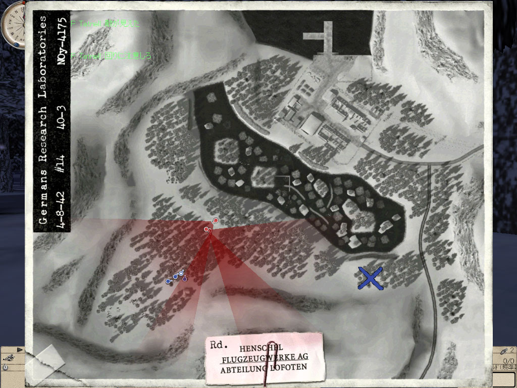 HD2でも,律儀にこの機能は収録されている。しかし今回は前作ほど緻密な設定はできず,ほとんど移動命令にのみ特化している。それこそ「4人をバラバラの位置に移動させる必要が生じたときに使うとラク」機能に専念したといっていい。今回の戦術マップの変更は筆者的には大変ありがたかった。HD1では細い道を走らせたりすると,AI兵士は平気で道を踏み外して死んだりしてたし。