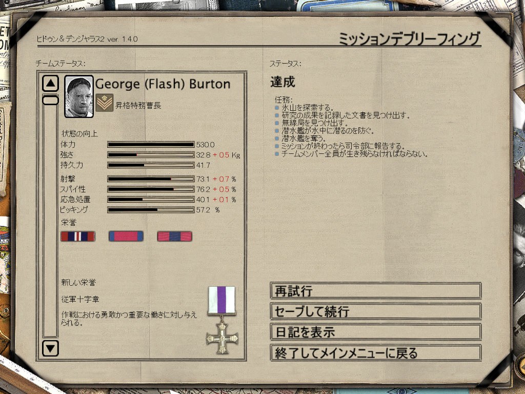 | ミッションをこなすことによって能力が伸びていくほか,働きによっては勲章を貰えたり昇進したりもする |