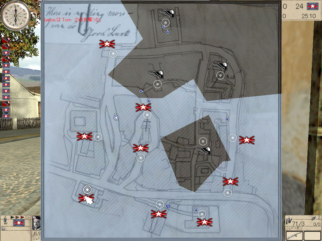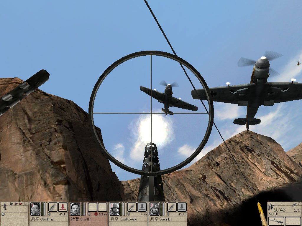 | 人数では圧倒的に劣るので,敵兵を効率よく倒していく必要がある。真正面からの撃ち合いはなるべく避けるべき |