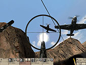 敵戦闘機を振り切る迫力の空中ミッション! 戦闘機は引きつけてから撃ったほうがより効果的だ |