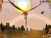 ゲーム性もさることながら,やはりこのゲームのキモは,ドラゴン独特の飛行感覚を楽しめることにある。加速はゆっくりだが,トップスピードはかなりの高速になる直線飛行。頭から尻尾の先までをまっすぐに伸ばしての滑空。巨体であるがための,ゆったりとした旋回。背中を丸めてのホバリング。言葉で説明しようとしてもなかなかうまくいかないのだが,飛行機でもヘリコプターでもない,そうかといって鳥でもない,紛れもないドラゴンを操作している気分になれるのだ。確かにドラゴンは空想上の生き物に過ぎないが,そのパブリックイメージは人々の中に確固として存在するわけで,それを裏切らない出来栄えであることは高く評価したい。これはもう,ドラゴンのフライトシミュレータといってもいいだろう。