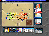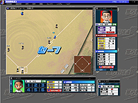 | 野球道シリーズではおなじみともいえる試合画面。選手はデフォルメされてるが,本格的な野球SLGなのである。状況を考えつつ,選手の力量も頭に置いて的確な指示を送ろう。監督の判断がチームの勝敗を決める