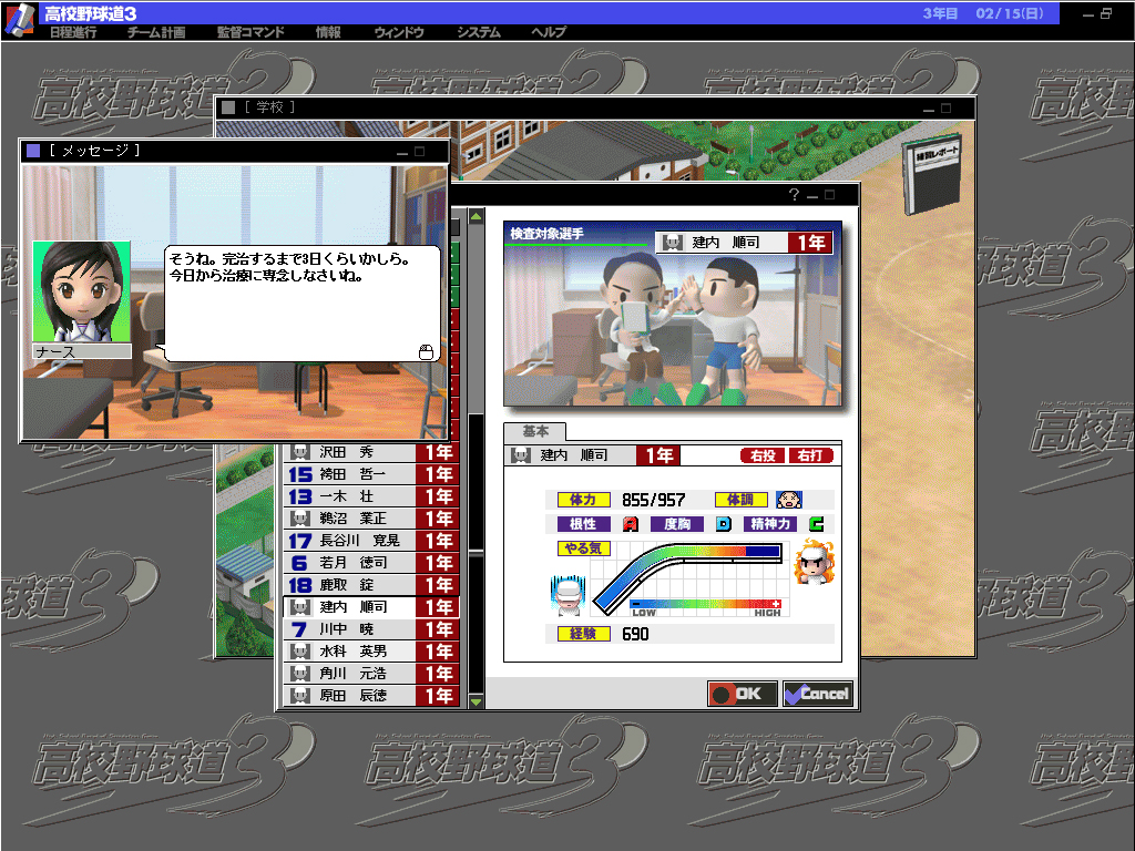ケガをした部員を放っておくと取り返しのつかない事態になりかねない。病院コマンドは重要なのである |