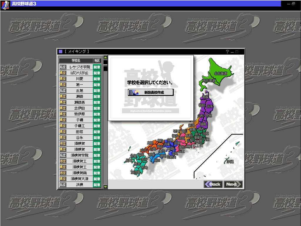 では前作に比べて「高校野球道3」はどこが変わったかというと……実はゲーム内容自体は,あまり変わっていなかったりして。何せ,ゲームスタート時に起こるイベント(野球嫌いの教頭先生が主人公に突っかかってくる)からして同じなのだ。大きな新要素といえば,機材購入のときに移動用バスを購入できるようになり,同じ都道府県内の学校としかできなかった練習試合が,隣接している都道府県の学校でも行えるようになったこと,購入した機材が壊れるようになったこと,新スキルとして「威圧感」が増えたことぐらいなのである。