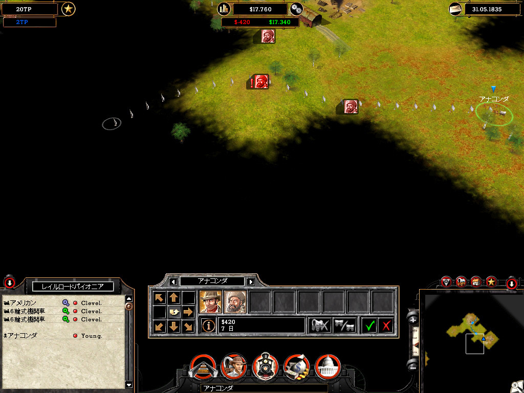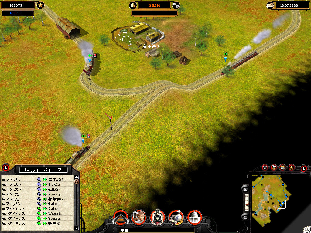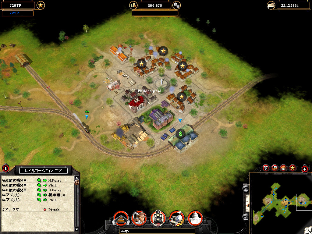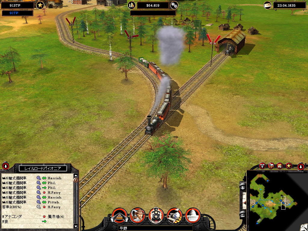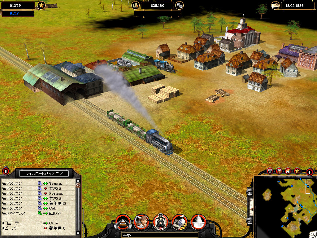 キャンペーンではライバル会社も登場し,ときにはライバルから駅を奪い取ることも必要だ。そのためにライバルの鉄道網に接続し,通商戦争を仕掛ける。通商戦争は,どちらの鉄道会社が町の信頼を得るかで勝敗が決まる。つまり,その町との取引量が多い会社に軍配が上がるわけだ。このときばかりはライバルに負けじと高性能の機関車を使い,町が求めている商品を大量に送り届ける必要がある。また流通を通して増えていく通商ポイントを利用し,役場をアップグレードすることで強盗団,工作員,賄賂を使った陰謀を企て,見えないところからライバル会社を攻撃することも可能だ。