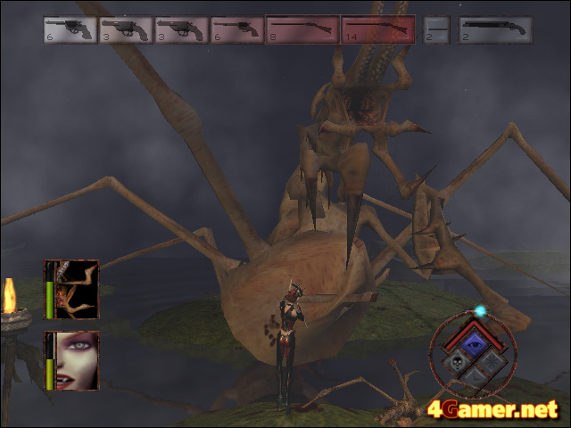 | 両腕に巨大なナイフをくくり付け,しかも両手にライフルまで持ってしまう。レインは吸血鬼ならではの怪力の持ち主 |