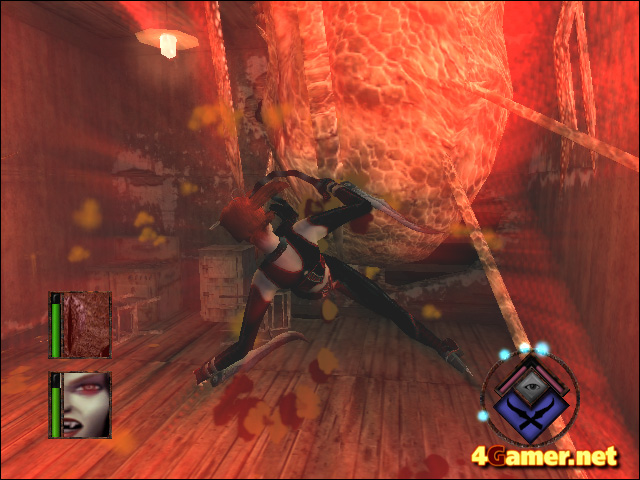 ブラッドレイジ時は画面に赤い霧がかかり,全体がスローモーションに。いかにも血に飢えたレインらしい演出 |