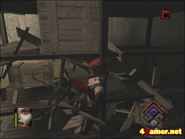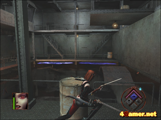 本作の魅力は,なんといっても,ヒロインであるレインの人間離れしたアクションシーンにある。彼女の具体的な操作方法について紹介しておこう。ゲームの基本操作は,W/A/S/Dキーによる移動とSpaceバーでのジャンプ,それとマウスで方向転換及び武器の使用である。ほぼノーマルなFPSの仕様といえる。
