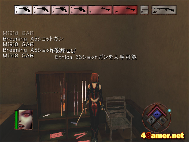 それなりの数の銃器類が登場するが,使い分けは神経質にならなくてよい。本作の神髄はレインの肉弾戦能力だ |