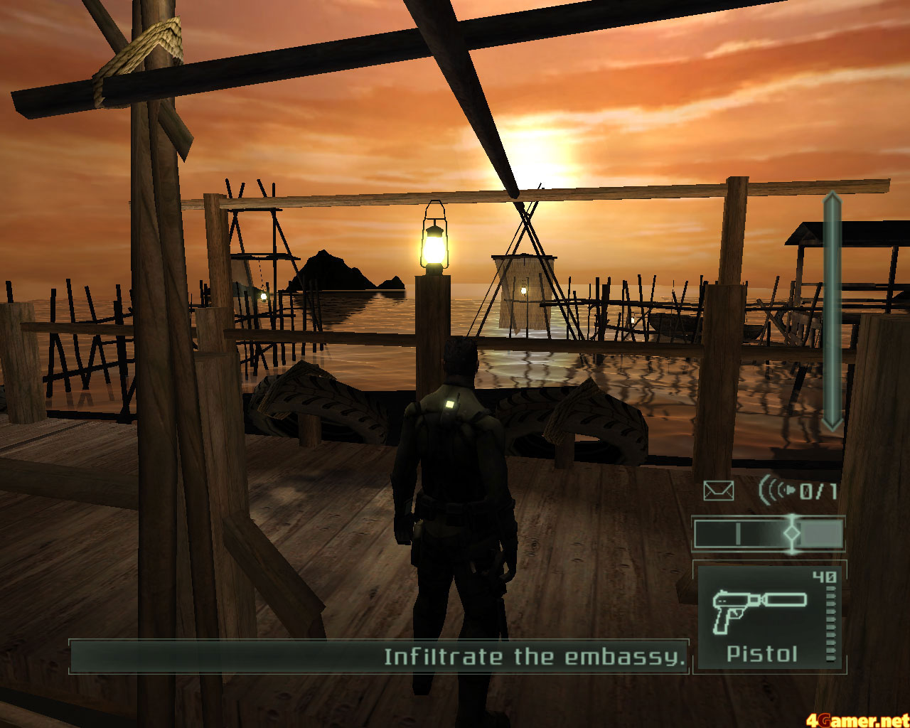 彼が帰ってきた。ぴっちりしたスーツに身を包み,暗いところが大好きで,体脂肪率5%以下(当社推定)の,あの中年男が帰ってきたのだ。男の名前はサム・フィッシャー。秘密が多いことで有名なアメリカ国家安全保障局(NSA)に極秘に組織された,秘密機関サードエシェロンの秘密工作員だ。彼の任務は,単独で敵組織の内部深くに潜入し,情報の収集,暗殺,誘拐など,大きな声ではいえないような仕事をこっそり行なうことである。今回の敵は,東チモールで反米武装勢力を率いるカリスマ指導者を排除し,秘密計画"パンドラ・トゥモロー"を阻止することだ!