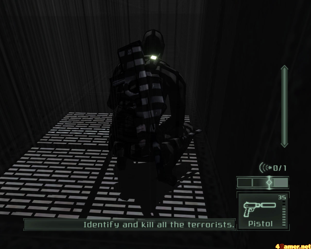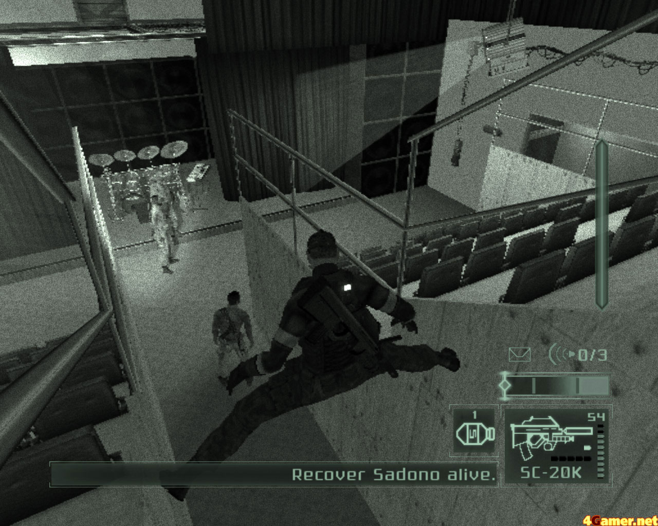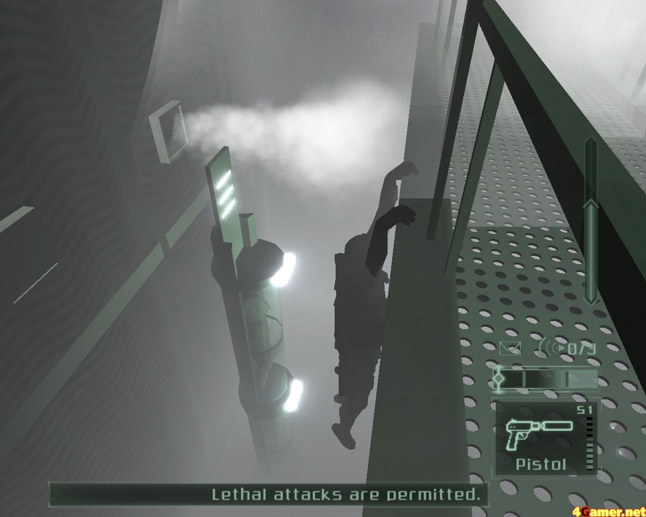 敵の士官をグラブして,網膜スキャナをパスすることも可能。撃ったり気絶させてはいけないので面倒だ |