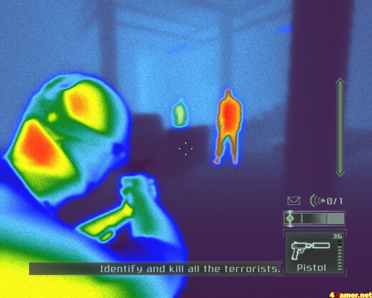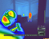 空港内のテロリストの全員抹殺を命じられたサム。さる理由で体温がやや高めになっているのが奴らだ |