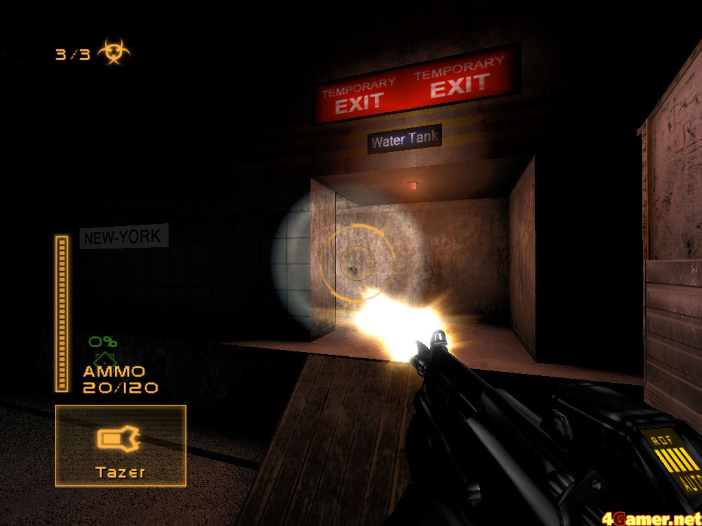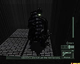 画面写真を見てすぐお分かりのように,シングルプレイは三人称スタイル。これだと自分の位置が暗いかどうか確認しやすく,またカメラの位置を頻繁に変えることによって,サムを動かすことなく背後や曲り角の先を確認できるのでスニークに便利だ。移動のときにちょっと混乱するかもしれないが,すぐに慣れる。