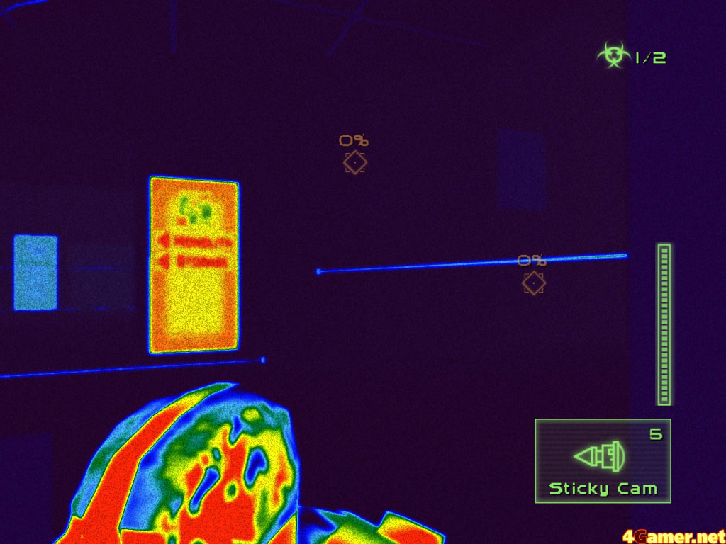 とはいえ全体的にゲームの難度はやや下がった感じがある。前作ユーザーの意見や,ビギナーへの対応を図ったものだろう。スニーク状態が崩れても,最大3回までなら大丈夫(マップによって違うが)だったり,一定時間発見されなければ警戒レベルが下がったりと,システム上の変化もサムの作戦遂行に優しくなっている。