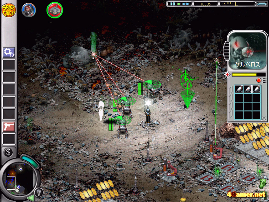 | 攻撃ロボット"ケルベロス"を使い宇宙蜂の巣を攻撃。大群で襲ってくる宇宙蜂は巣を叩くのが先決 | テキスト,音声のすべてが日本語化されているため,英語が苦手でも安心してプレイできるのが嬉しい |