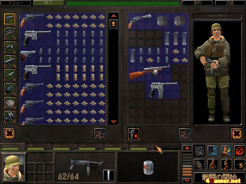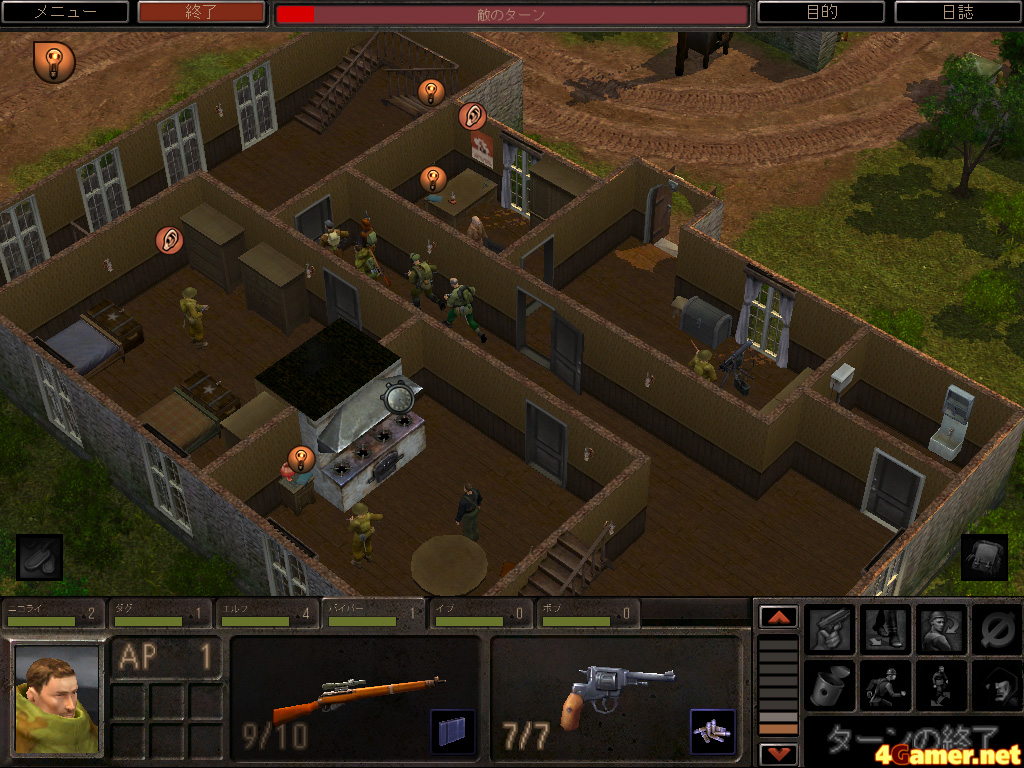 "偵察兵"の6種類。基地で装備を調えた部隊が目的のマップに到着したところからゲームはスタートする。敵に見つかるまではターンに制限されることなく行動可能だ。敵兵を発見した時点でターンベースモードに移り,いよいよ戦いが開始される。