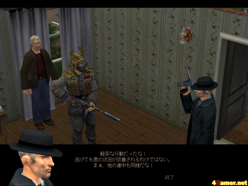| 敵NPCの位置が物音などで確認できたときには,耳のマークと赤いダミーモデルで表示される | 目標に向かって駆け寄る特殊部隊。点線は指定した進行ルート,○の中の数字は到達に必要なAPだ | ときおりイベントシーンも挿入される。ヒントが含まれている場合があるので,聞き漏らしのないように |