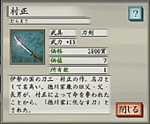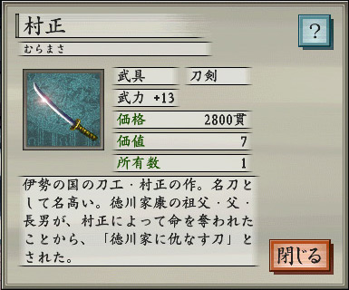 | 怪しい人物から買った刀は,なんと妖刀「村正」。武力+13は嬉しい! | |
