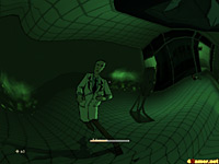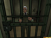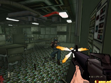 | 隠密行動中に銃声は厳禁。ってことで,意外にも手投げナイフの使用頻度は高い | ステージラストにはボスキャラが待ち受けているミッションもある。画面は毒薬使いのボス。敵の毒薬攻撃を食らうとこんな視界になりしばらく戦闘不能に! |