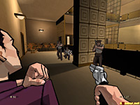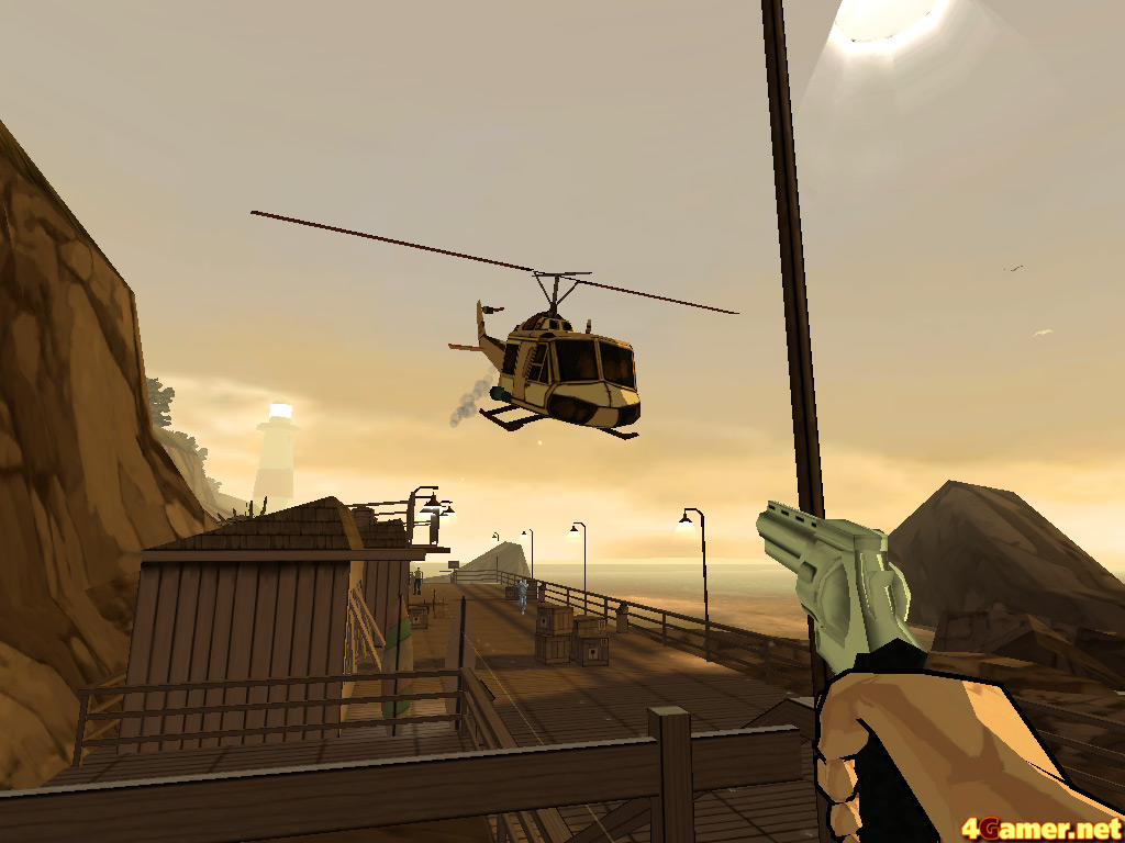 前段で思わず「ありがちな設定」と評してしまったXIIIだが,それをいったらゲームスタイルも「ありがち」な一人称シューティング(FPS)ゲームである。ところが,プレイしていて「ありがち感」を感じさせないのは,やはりその切り口が斬新なためだろう。その斬新さを最も感じさせてくれるのがそのビジュアル様式だ。